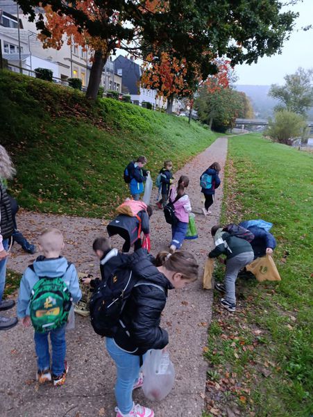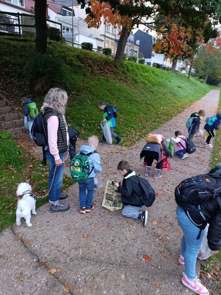 Am 9.10 fand der Wandertag der Klasse 2 statt. Gut ausgerüstet machte sich die Affenklasse auf den Weg an der Sauer entlang bis zur Grillhütte, um unterwegs allerlei Herbst-Schätze wie Kastanien, Eicheln oder Blätter einzusammeln. An der Römischen Villa gestaltete jedes Kind mit den gesammelten Naturalien ein eigenes Herbst-Mandala. Zum Abschluss wurden die Schätze zusammengelegt und es entstand ein großes Klassen-Mandala.