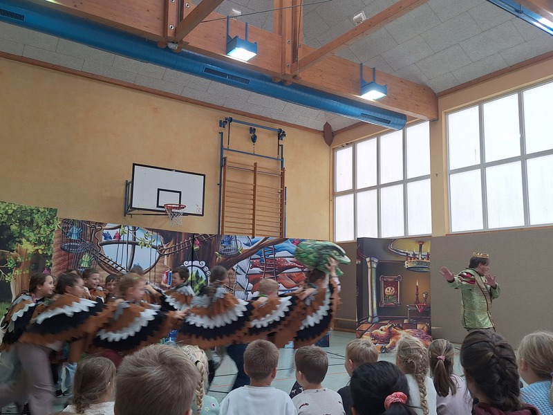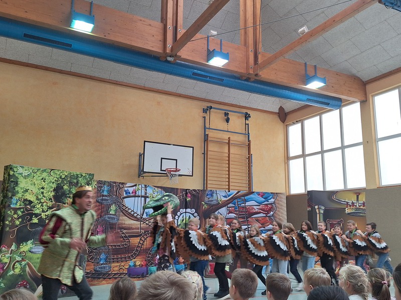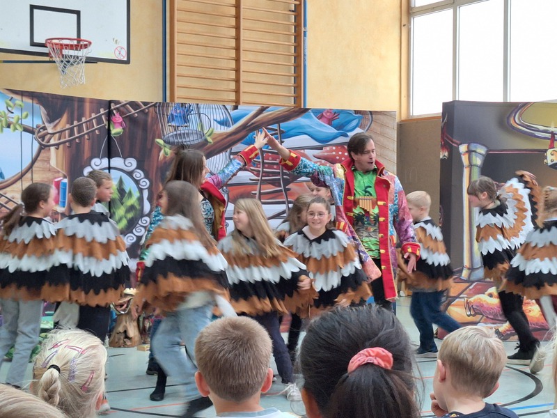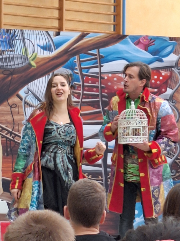 Nachdem die jetzigen Viertklässler vor etwa einem Jahr bei einem Opernprojekt mitgemacht und 250€ für eine Aufführung gewonnen hatten, war es am 26.11.2025 endlich so weit: Die Opernretter besuchten uns mit dem Stück "Papageno und die Zauberflöte".